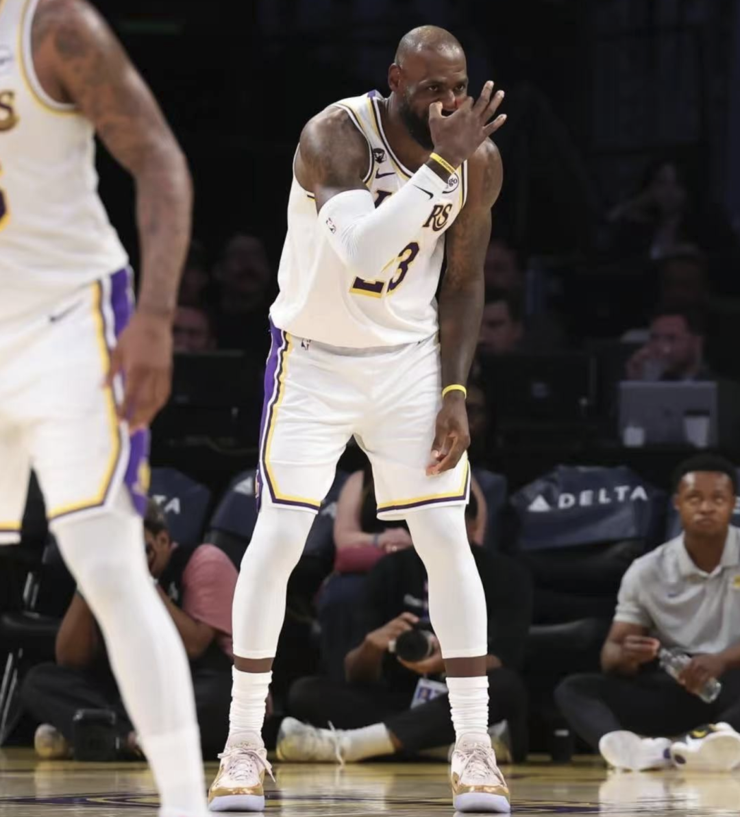 他也从未有过本赛季这样的自由。在他的篮球生涯中,第一次,他不是球队最重要的人。虽然这导致了些许尴尬(他的球队整个职业生涯都像太阳一样围绕着他运转),但这也让他感受到了前所未有的解脱。 当詹姆斯接受湖人正在向卢卡·东契奇的方向发展时,这为他作为职业球员创造了比以往更多的自由。随着退役日期的临近,他的场上“调皮”行为呈上升趋势,但今年,这达到了新的高度。 本赛季湖人击败丹佛的比赛前,詹姆斯找到朋友、掘金队助教贾里德·达德利,用一只手模仿 crank 的动作,另一只手竖起中指。